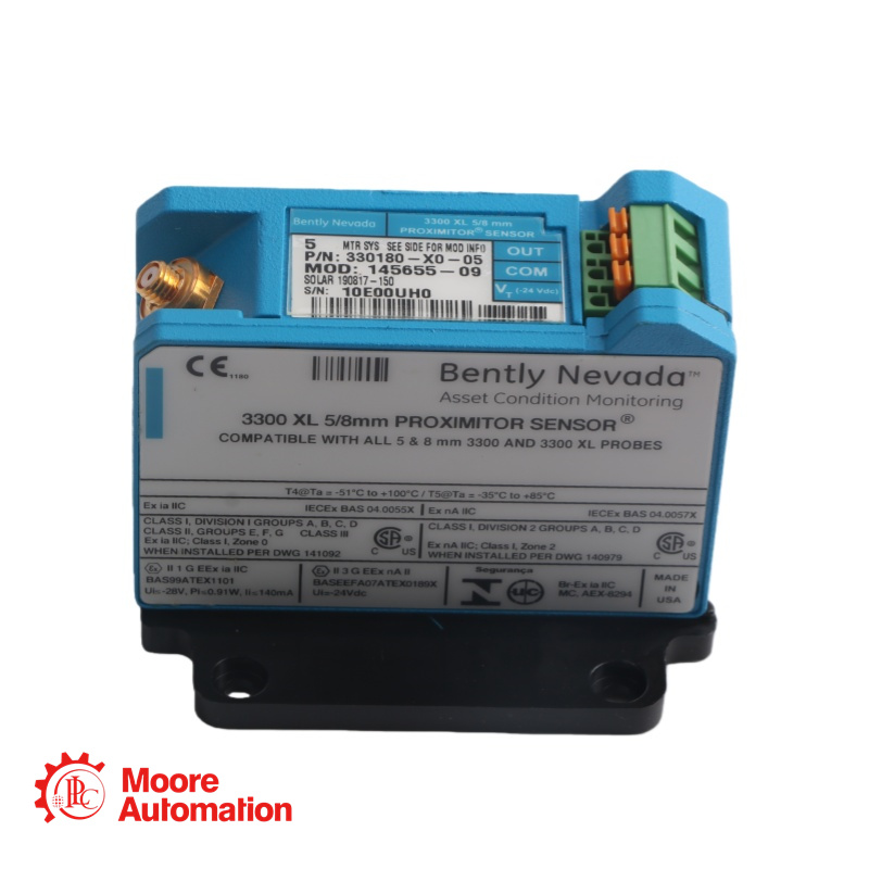 330180‑X0‑CN MOD 145004-83 is a 3300 XL Proximitor Sensor, with a non‑standard length and mounting configuration (X0), China‑specific agency approval/marking (CN). |